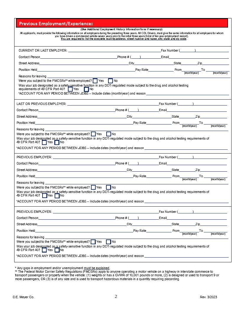 - Hazmat Endorsement (or ability to acquire certification as a condition of employment).